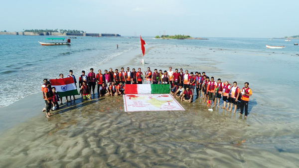 तारकर्ली-मालवणच्या समुद्रामध्ये सिंधुदुर्ग किल्ल्याच्या साक्षीने सकाळी 7च्या सुमारास भर समुद्रात अन्वय अंडरवॉटर सर्व्हिसेसचे रूपेश प्रभू, अन्वय प्रभू, सुमंत लोणे, राजू परब, राशमीन रोगे, नारायण रोगे यांच्या सहकार्याने तीन बोटी व एक स्पीड बोटद्वारे सुमारे तीन किलो मीटर आतमध्ये समुद्रामध्ये गेल्यानंतर 321 फूट लांब व 10 फूट रुंद तिरंगा ध्वज फडकावला.