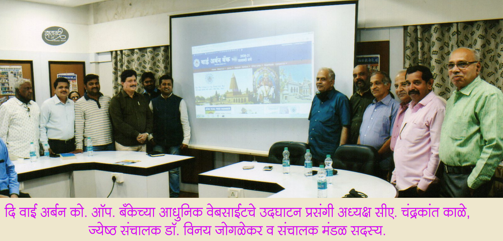 ‘बँकिंग ग्राहकांच्या बदलत्या गरजा ओळखून दि वाई अर्बन को. आँप. बँकेने शताब्दी वर्षाचे औचित्य साधून आकर्षक (डायनॅमिक) वेबसाईट बँकेचे ज्येष्ठ संचालक डॉ. विनय जोगळेकर यांच्या हस्ते सुरू केली आहे. बँकेचे सभासद, खातेदार, कर्जदार व हितचिंतक यांनी नव्या आकर्षक स्वरूपातील वेबसाईटला अवश्य भेट द्यावी,’ असे आवाहन बँकेचे अध्यक्ष सीए. चंद्रकांत काळे यांनी केले.